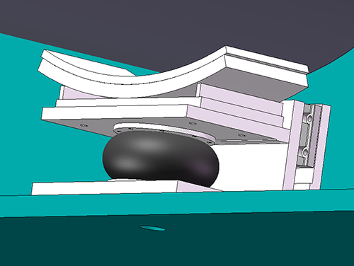 由電動(dòng)推桿,關(guān)節(jié)軸承等件組成,可以方便的將車(chē)輛舉升并對(duì)中至轉(zhuǎn)鼓的高點(diǎn),該機(jī)構(gòu)共有四套,其結(jié)構(gòu)如上圖。
