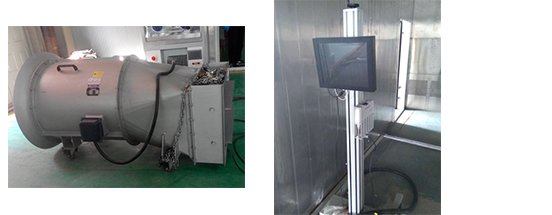 車(chē)輛迎面風(fēng)機(jī)系統(tǒng)可模擬車(chē)輛在真實(shí)道路上受到的迎面風(fēng),并起冷卻作用。此風(fēng)機(jī)可前后移動(dòng),動(dòng)力電纜布置可調(diào)。