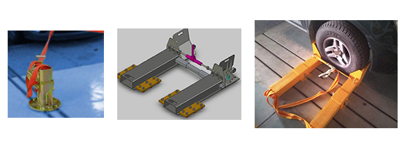 能限制車(chē)輛橫向和縱向的移動(dòng)≤±12.7mm,且不應(yīng)使試驗(yàn)車(chē)輛的驅(qū)動(dòng)輪產(chǎn)生附加的正應(yīng)力,并能適應(yīng)不同車(chē)輛的安裝。